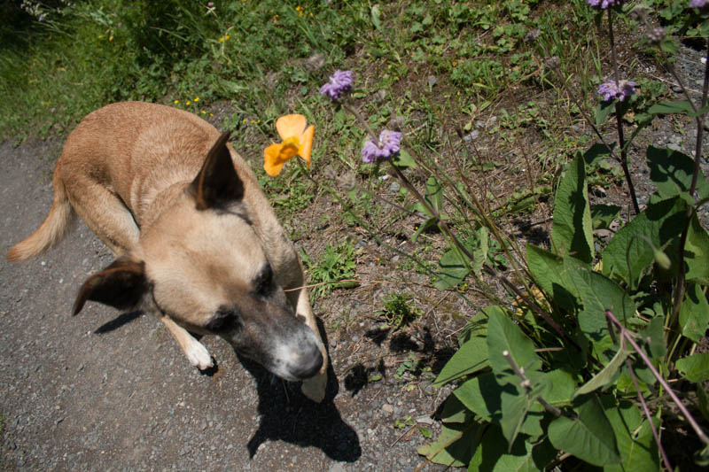 Ich habe mir ernsthaft überlegt, Matthias und Heppo alleine wandern zu lassen, da ich dringend etwas Zeit für mich bräuchte. Allerdings ist der Parkplatz nicht so wirklich schön. Und ein bisschen neugierig bin ich natürlich auch auf See zwei, See drei und die Edelweißwiesen, die unser Reiseführer verspricht.