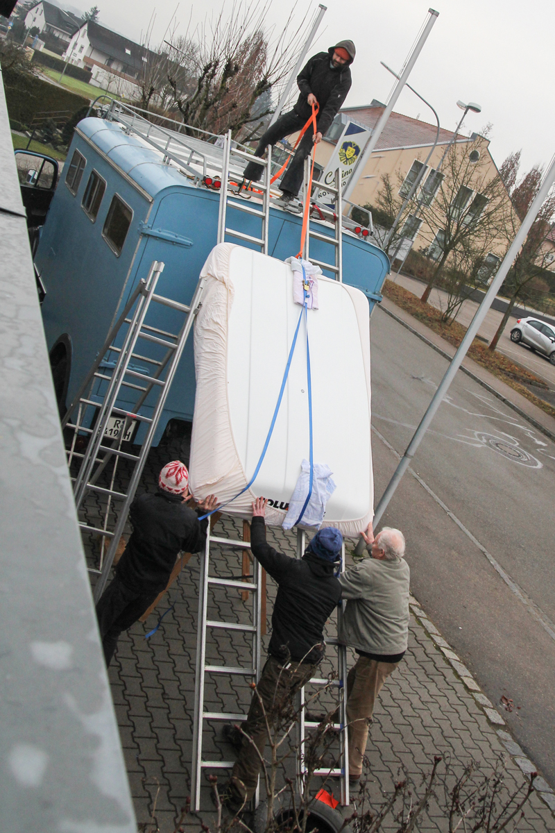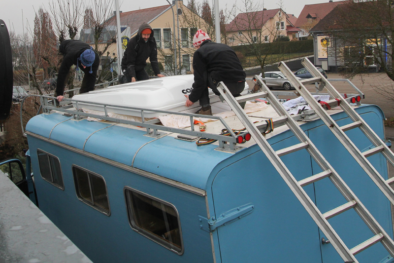 Nachdem das Zelt nach ein paar Nächten Probeschlafen bei unter null Grad als reisetauglich befunden wurde, konnte die Montage beginnen.