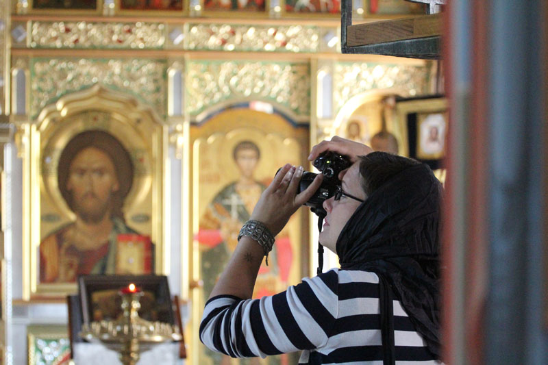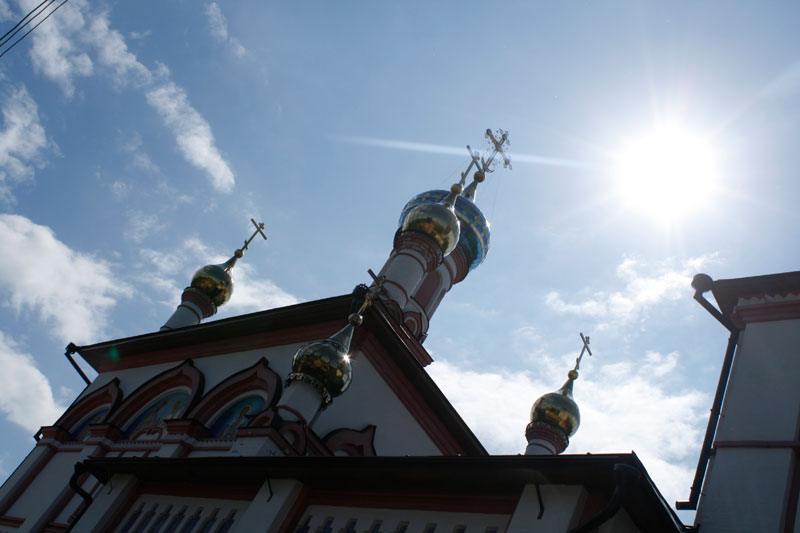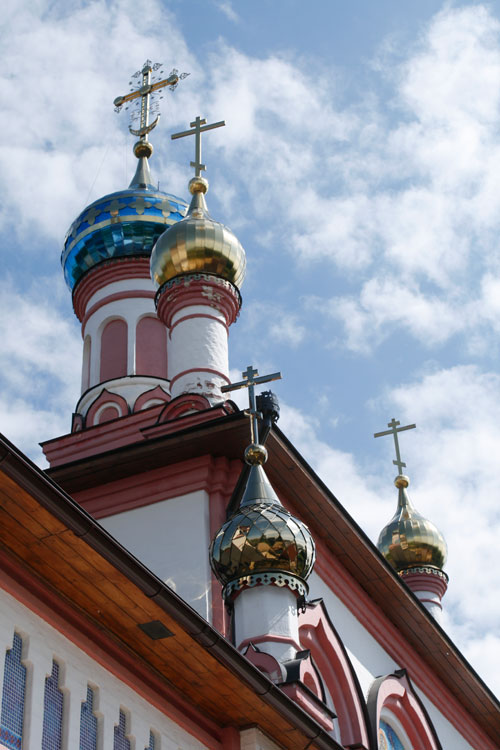 Dann marschieren wir selber los und klappern tapfer die meisten Klöster und Kirchen ab. Sie sind wirklich sehr schön, die russischen Kirchen mit den Zwiebelkuppeln und den goldenen Altarräumen. Aber irgendwann haben wir genug von all der Pracht. Außerdem haben wir noch einen sehr wichtigen Punkt zu erledigen, unsere Registrierung. Daher begeben wir uns zuerst wieder zur Post. Die Dame am Schalter ist sehr kompetent, doch dann stellt sich heraus, dass sich auf der Post nur russische Bürger registrieren lassen können. Immerhin gibt sie uns den Namen von einem Amt, dem UFTC, und einen hingekritzelten Straßennamen. Am Amt sind wir wohl das Tageshighlight der Beamtinnen, denn unser Anliegen wird mit Kichern und Späßen kommentiert, aber ohne das gewünschte Ergebnis zu erzielen. Ich spreche sogar beim „Natschalnik“, der Vorgesetzten, vor. Auch sie ist amüsiert und sehr nett, macht mir aber klar, dass sie nichts für uns tun könne, denn die Registrierung könne nur ein Hotel vornehmen. Für das Reisen und Wohnen im Wohnmobil hätte sie kein Formular. Als nächstes suchen wir Hilfe bei der Polizei. Über eine Gegensprechanlage vor Panzerglasscheibe muss ich mit der russischen Version von Bruce Willis sprechen. Väterlich besorgt kommt er sogleich aus seiner Amtsstube hervor, schmunzelt über meinen übertheatralischen Ausruf „Pamotsch!“ (Hilfe) und muss mir aber ebenfalls sagen, dass er mit der Registrierung nichts zu schaffen habe. Schade. Immerhin gibt er uns noch einmal ziemlich klar den Hinweis mit dem Hotel. Einfach in ein Hotel gehen, zahlen und Stempel drauf, fertig! Aha, man muss also gar nicht einchecken, denn dies war unsere eigentliche Sorge.