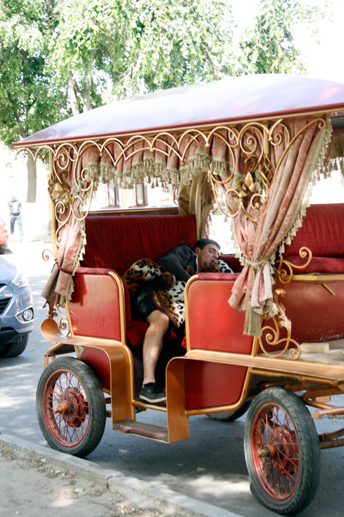 Der Ort macht einen sehr entspannten Eindruck. Junge Familien spazieren am naturbelassenen Flussufer entlang. Die Männer reißen sich das Shirt vom Leib, springen heldenhaft in das braune Wasser und kraulen prustend durch die Seerosen, während die Frauen – mit schönen Kleidchen angetan – die Kinder im Auge behalten. Überall glitzern die goldenen Kirchenkuppeln um die Wette.